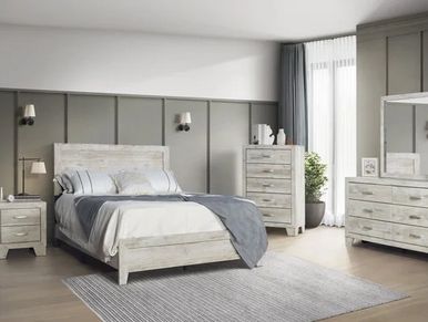 4pc Queen Bedroom Set | (Reg.$1,157) Now:$799 Includes: Queen Bed Frame, Dresser, Mirror & Nightstand.